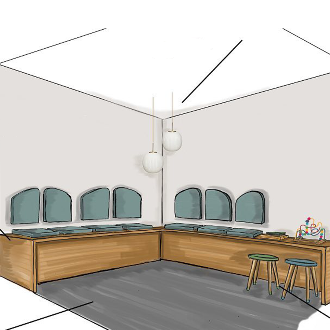 - Création d’une planche croquis comprenant: Un croquis plongeant pour visualiser la future implantation ou un croquis d’un espace de la pièce (un meuble à créer sur mesure, un espace à aménager)