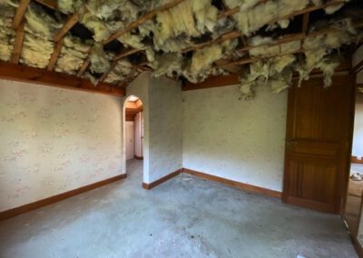 Cette chambre datant des années 70 était dans son jus avec une grosse moquette au sol, un plafond en lambris et une mini salle d’eau qui n’avait pas grande utilité.