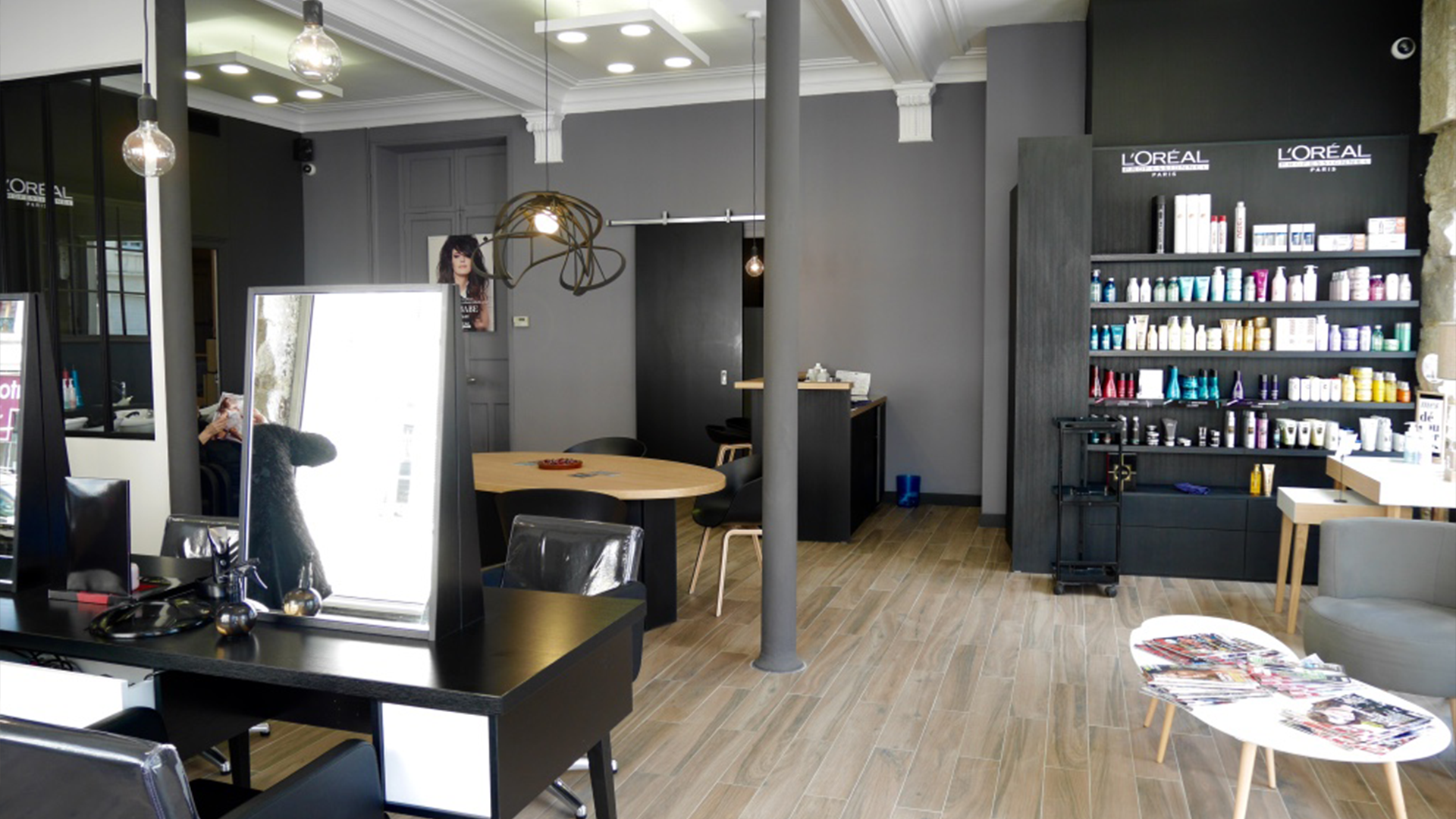 L’espace Bac a été peint dans une couleur sombre pour un effet cocooning afin de favoriser la détente, une verrière noire à été installée! L’espace coiffage est devenu central afin de libérer les vitrines et faire rentrer la lumière naturelle. L’espace vente produits est bien plus grand et plus visible avec un accès facile pour le client!