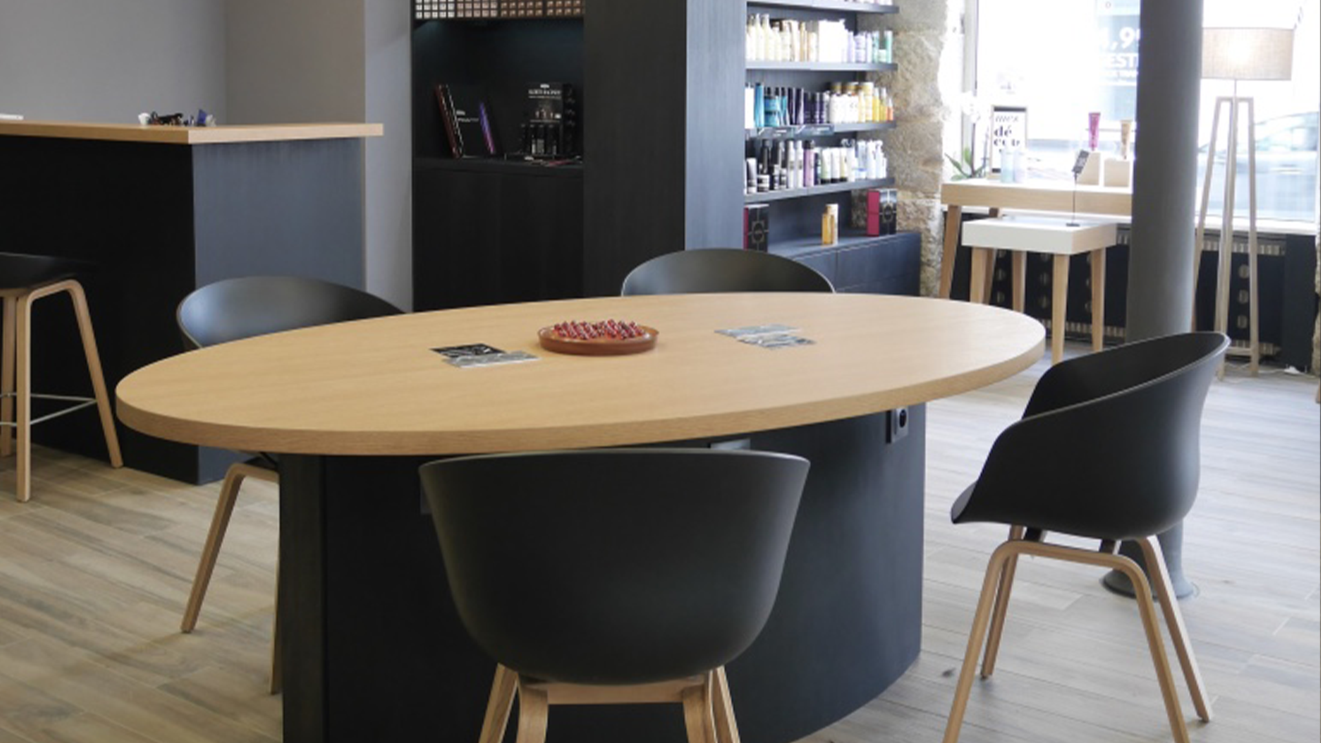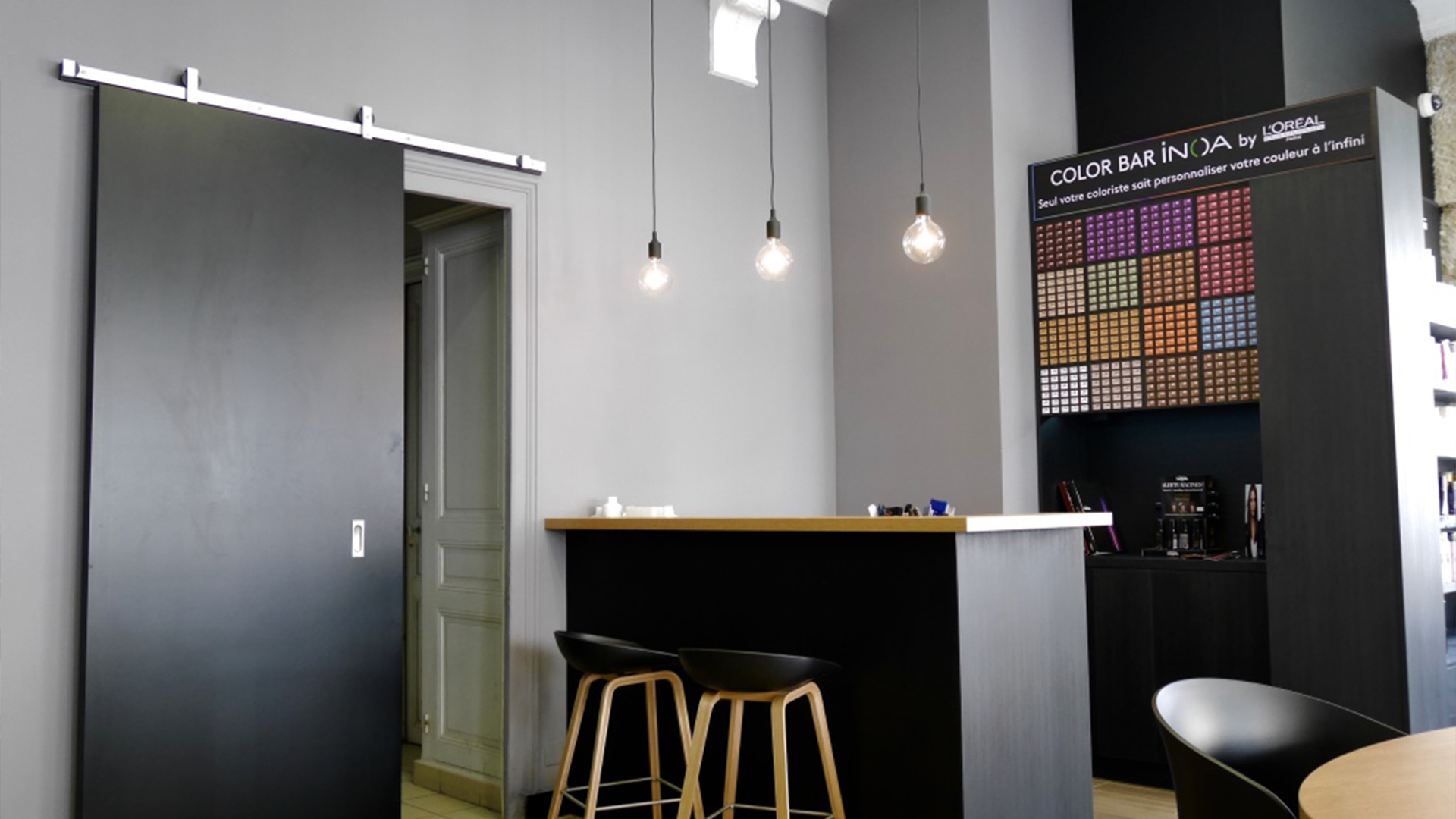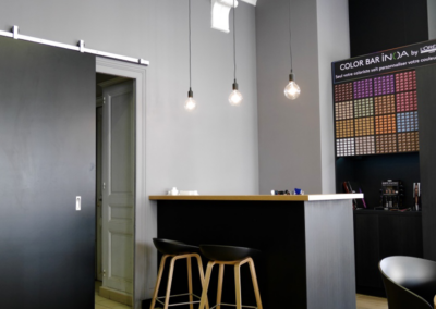 Un espace « Color bar » a été créé afin de mettre en avant l’expertise couleur et faire les préparations devant le client…